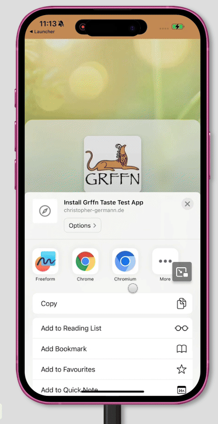 The GRFFN App is quick and easy to install. It uses the standard installation routine for Progressive Web Apps (PWAs), which is supported by all modern devices.